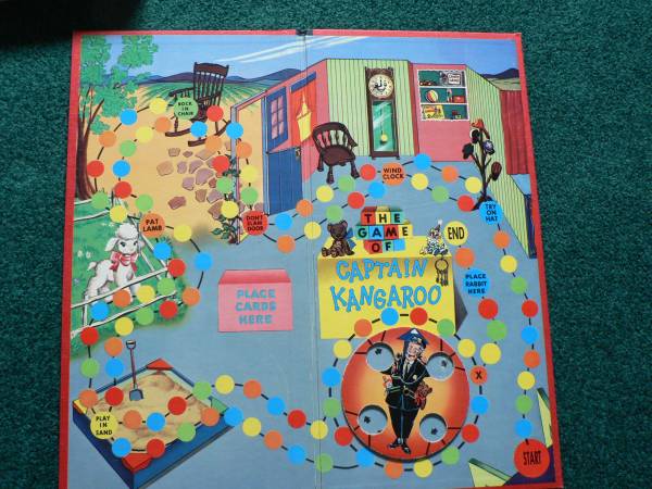This game for children Ages 4 10 gets it title from an Educational Children's Television Program geared to pre-schoolers (1955-1980). Captain Kangaroo (Bob Keeshan) and Mr. Green Jeans (Hugh Brannum) starred. This is a simple match the colors in order to move kind of game. Box has been taped, but all the pieces are included and in great shape. Send phone number if interested, if you prefer me to text or call.