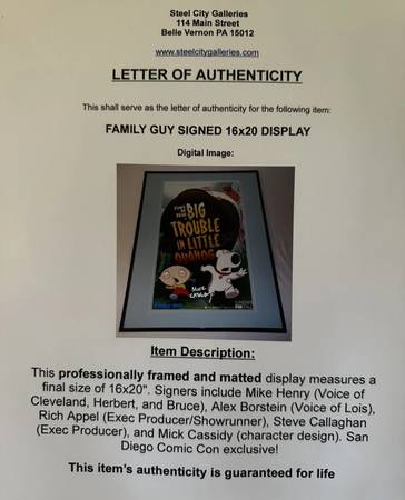 FAMILY GUY Signed Poster with COA - $99 (Pittsburgh)