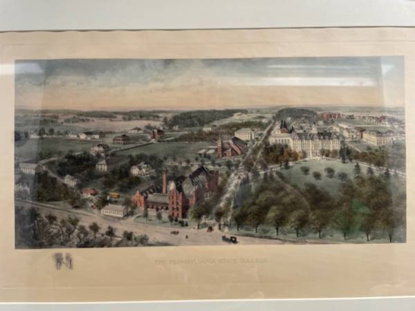 Famous Pennsylvania State College print (late 1890’s) beautifully framed in a gold frame. Print was transferred from a metal plate and then individually hand painted. Very rare find.