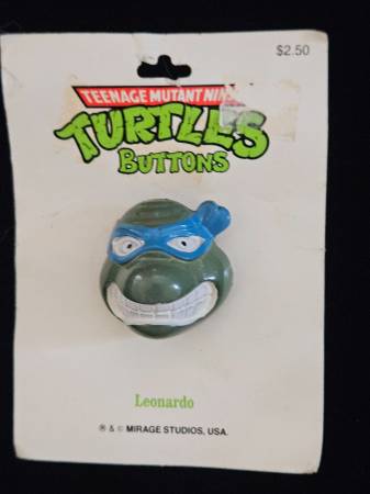Teenage Mutant Ninja Turtles Jumbo Button. New. Card is discolored and creased. Button is approx. 1.5"X1.5". Button is in excellent condition.