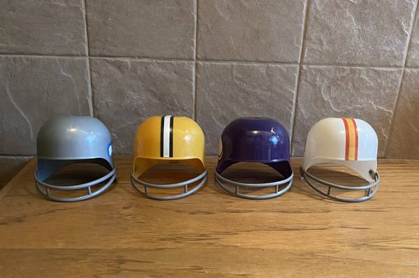 1974 & 76 Vintage Dairy Queen Laich 4” NFL Football Helmets Seattle Seahawks, Tampa Bay Buccaneers, Minnesota Vikings, Green Bay Packers