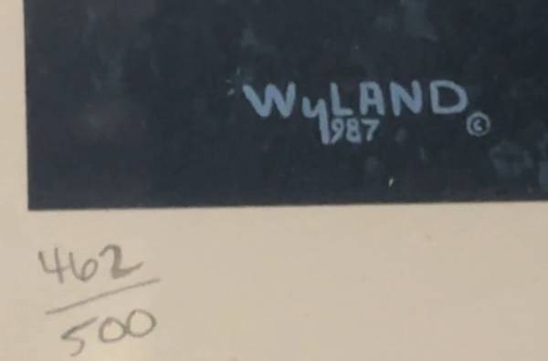 The lithograph is an original, licensed reprint that was produced in 1987, during the contemporary period. It is framed and features a beautiful depiction of the whales in shades of blue and white. The lithograph is a must-have for nature and art lovers alike, as it showcases the beauty of the ocean and the talent of the artist, Wyland.