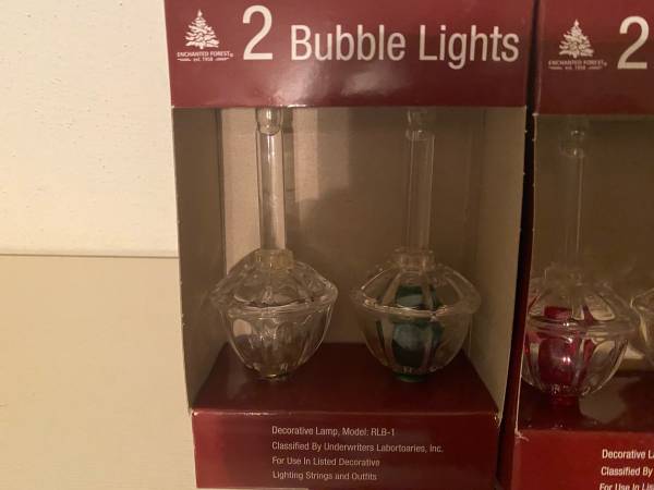 Cleaning out Christmas stuff and found 2 Packs of Bubble Lights that were never used, plus 12 multi-colored Vintage Glass Bubble Liquid Tops that were left over from last year. Asking $15.00. Will...
