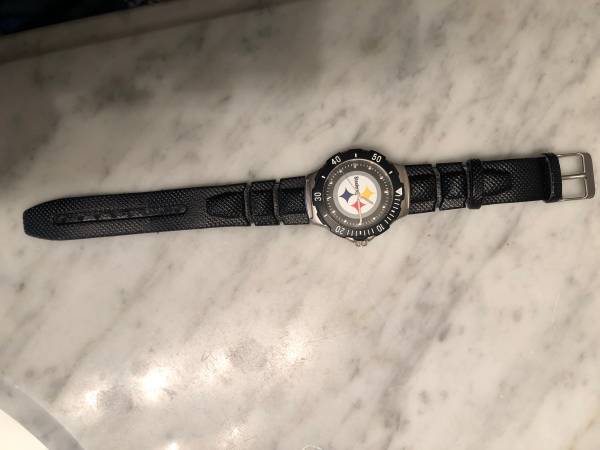 Steelers Watch - Primetime logo on back of watch. May have worn twice. Replaced battery so it is new. Protective covering is still on the back of the watch.