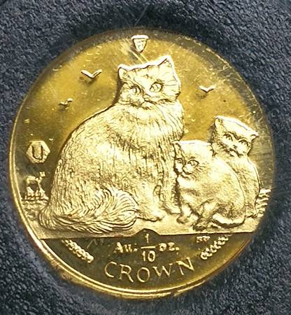 1/10th Troy Ounce .999 Fine GOLD CAT Crown from the Isle of Man. If interested call or text 7two4-746-9190 no emails.
