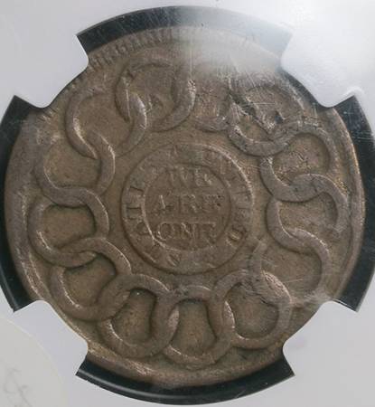 1787 FUGIO CENT United States First Penny NGC Fine 1787 4 CINQ P.R. FUGIO CENT with "STATES UNITED" . NGC graded Fine details. Scuff on reverse. If interested call or text 7two4-746-9190 no emails.