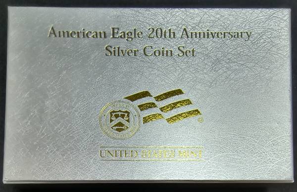 2006 American SILVER EAGLE 20th Anniversary 3 piece Coin Set. In original government packaging with certificate of authenticity. Set includes enhanced reverse proof regular proof and uncirculated silver eagles from the West Point and Philadelphia mints.