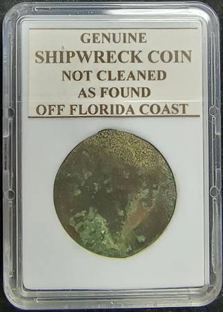 Genuine SHIPWRECK COIN as FOUND OFF FLORIDA COAST