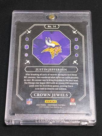 🏈 JUSTIN JEFFERSON 2023 Rookie Crown Jewels Contenders Football Card 🏈 If interested call or text 7two4-746-9190 no emails.