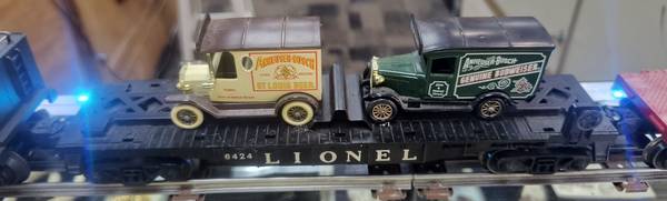 🚂 LIONEL BUDWEISER Vintage Flat Car w/ Delivery Vans O Gauge 🚂 Very cool vintage Lionel O gauge flat car car hauler featuring two old time Budweiser delivery trucks. Excellent condition. If...