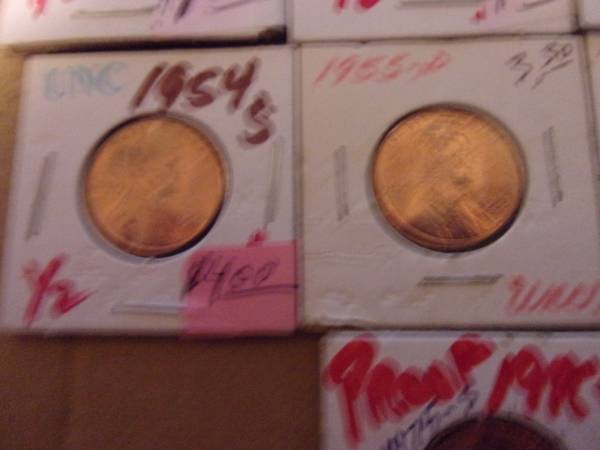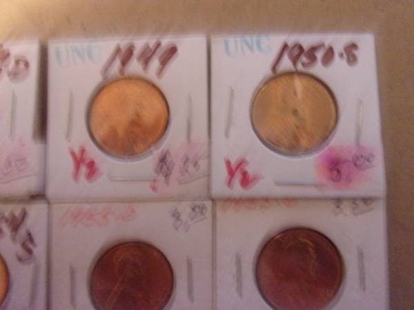 6 Uncirculated Wheat Pennies 1----1948D 1----1949 1----1950S 1----1954S 2----1955D and 1 Proof 1975S penny