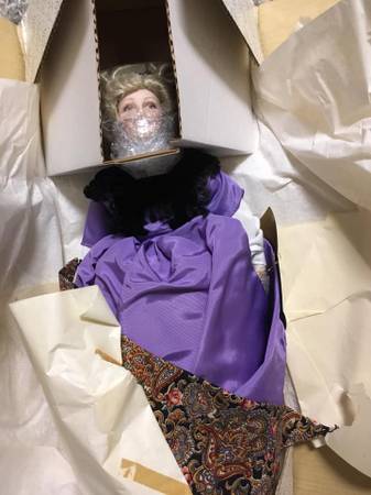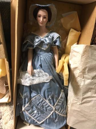 Franklin Mint Heirloom Porcelain Gone With the Wind Dolls (set of 8) and a Folding Tara Scene Background with a separate Wooden Display Unit of the Tara's front door. Condition New in Original...