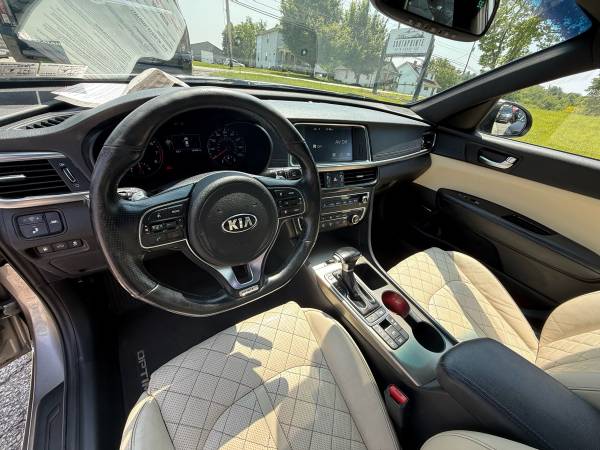 2018 Kia optima sx-l turbo FULLY LOADED! New pa state inspection/emissions! Service is all up to date! New brakes/tires! Spacious, sporty and practical! Getting up to (31pmg) while achieving 245hp is impressive! To list some of the many features, panoramic roof, heated/cooled diamond stitched leather seats, lane keep/parking assist, 360/back up camera, adaptive headlights, heated steering wheel, fog lights, Harman kardon sound system, Apple CarPlay/ android auto, retractable window shades, keyless/fobless entry and so much more! Priced to sell @, $13,500 thank you!