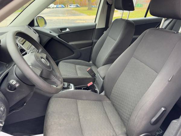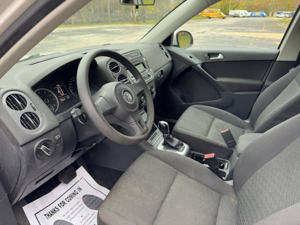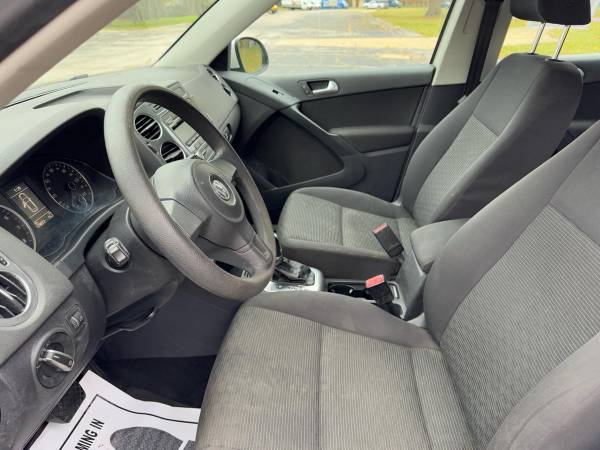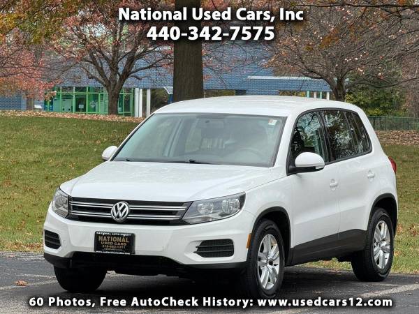 Hop into this sleek and stylish White 2012 Volkswagen Tiguan and prepare yourself for an adventure! With all-wheel drive capabilities, this Tiguan is ready to tackle any terrain you throw its way. Safety is a top priority with child safety door locks and multiple airbags to keep you and your loved ones protected. The Tiguan's sporty alloy wheels and front air dam give it a bold and dynamic look, while the spacious cargo area with tiedowns and cover ensures you have plenty of room for all your gear. Cruise control and a trip computer make long journeys a breeze, while the AM/FM radio and CD player provide entertainment along the way. This Tiguan also offers convenient features like power windows, keyless entry, and a tire pressure monitor to keep you comfortable and informed. Don't miss out on the opportunity to make this reliable and versatile Tiguan your next ride! Visit National Used Cars Inc online at www.usedcars12.com to see more pictures of this vehicle or call us at 216-692-1311 today to schedule your test drive.