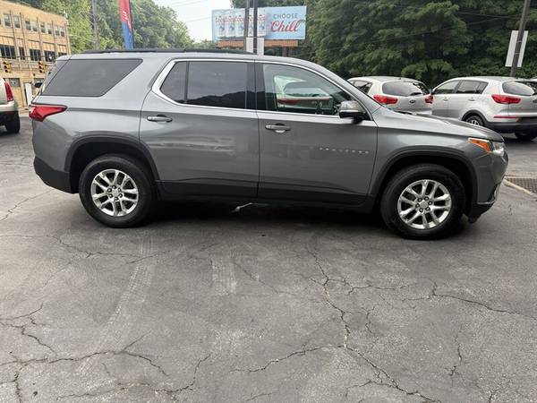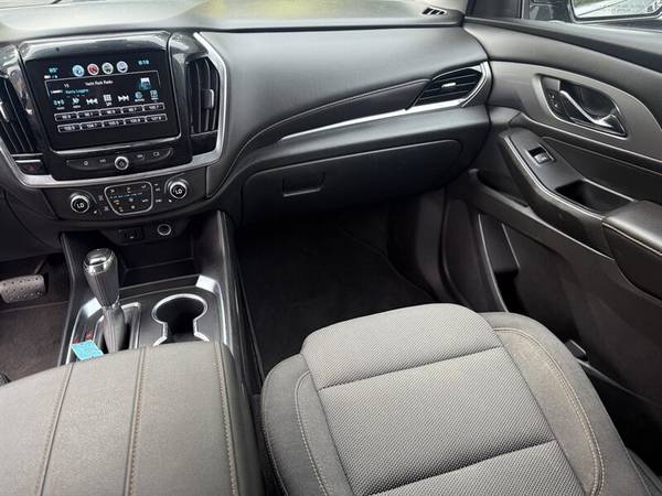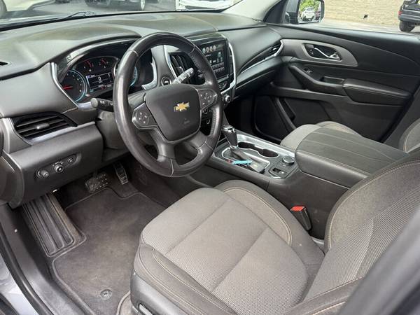 2019 Chevrolet Traverse LT Cloth... ONE OWNER ... in striking Graphite Metallic exterior with a refined Jet Black/Dark Galvanized interior. Powered by a robust 3.6L V6 engine producing 310hp and 266ft. lbs. of torque, this versatile SUV offers a perfect balance of power and efficiency, achieving 17 MPG in the city and an impressive 25 MPG on the highway. This well-maintained vehicle comes with a host of factory default features, including advanced safety technologies, comfortable cloth seating, a user-friendly infotainment system, spacious cargo capacity, and a smooth ride quality. Experience the perfect blend of style, performance, and practicality in this 2019 Chevrolet Traverse LT Cloth.