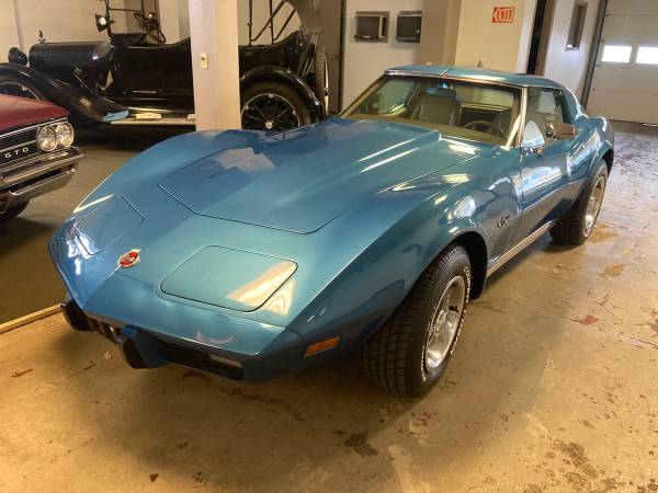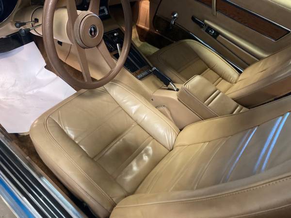 A real must see Corvette unique special order bright blue with buckskin leather. One of most solid and tight c -3s around. Excellent paint and body. Very clean underneath every thing works including COLD air. Just 45000 miles. No disappointments here needs nothing but a another good home. One owner car with freshly rebuilt original motor and transmission. Not many finer 76s anywhere