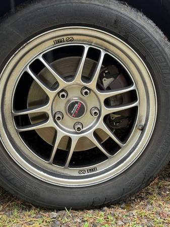After market Enkei Rpf1 wheels (Silver) with locking lug nuts.