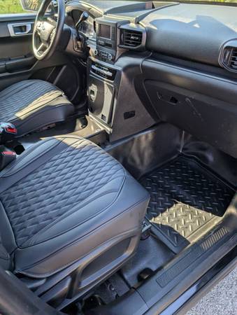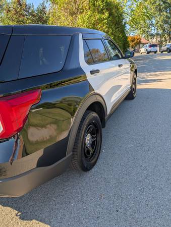 This 2021 Ford Explorer Police Interceptor has had all emergency lights and siren disconnected or removed, making it suitable for civilian use. This vehicle is equipped with the original full backseat feature, and would be a great choice for a constable or