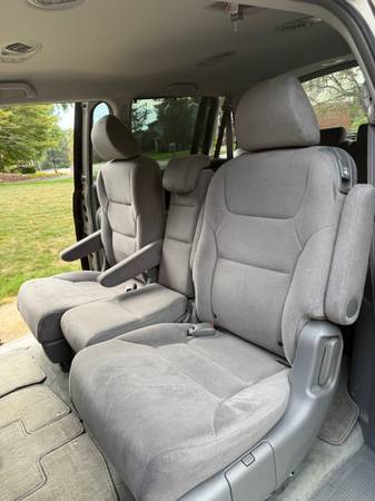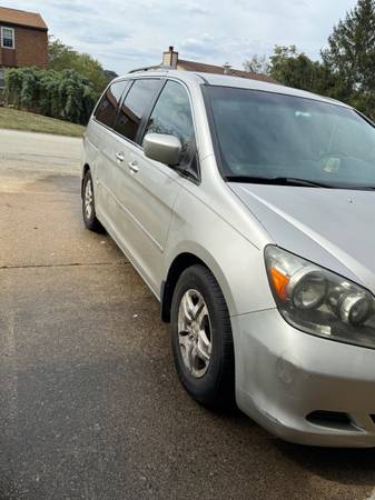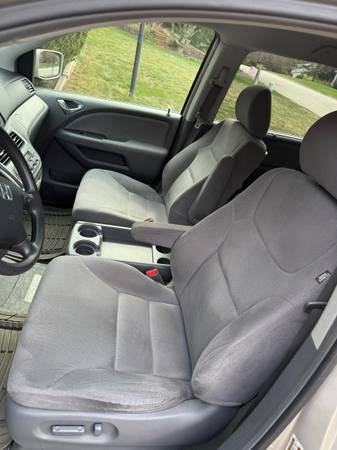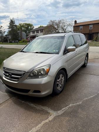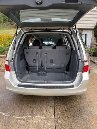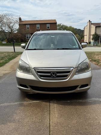 The 2006 Honda Odyssey EX is a front-wheel-drive, eight-passenger minivan powered by a 3.5-liter V6 engine and a five-speed automatic transmission. Key features include power windows, mirrors, and keyless entry, a 6-disc in-dash CD player with six speakers, cruise control, and a tri-zone climate control system for comfortable, versatile passenger and driver environments. The interior boasts three rows of seating, with the third row having a fold-flat 60/40 split, providing both comfort and ample cargo space.