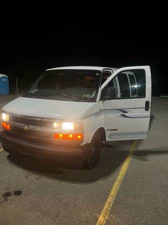 For sale is my 1996 Chevrolet Starcraft conversion van based on the Express 1500 chassis with the reliable 5.7L V8 engine. This van has been a solid daily driver for me, with only about 145,000 miles on it—pretty low for its age. It's got all the classic conversion features like plush captain's chairs, rear bench that folds into a bed was taken out for more space, wood trim accents, power windows/locks, cruise control, AM/FM stereo, and plenty of storage. The interior is clean and comfortable, great for road trips, camping, or even as a work van with the extra space. Exterior is in decent shape for a 29-year-old vehicle—no major dents that I've noticed, and it starts right up every time. Minor rest repair may be needed for inspection stickers as you can see documented and evaluation. I got Mr Tires however, you may be able to bring it to another shop it’ll pass.