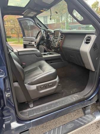 2013 Ford F250 Super Duty Crew Cab Lariat Pickup in blue with black interior. This powerful truck has a 6.2L V8 Flex Fuel engine, 6-speed automatic transmission, and 4WD. With 171,258 miles, it's in very good condition. Features include: