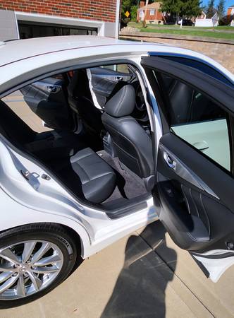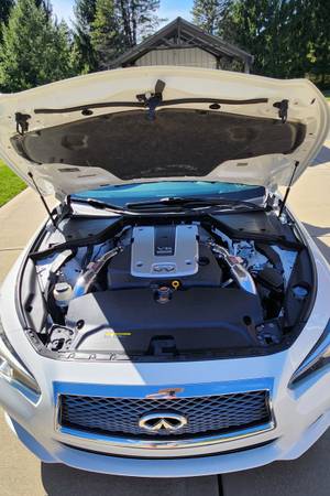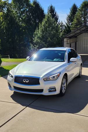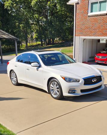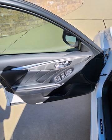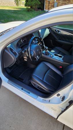 2014 Infiniti Q50 premium luxury sport sedan. In pearl white and black leather interior. Has a perfectly blend of luxury, performance, comfort, and technology. Extremely well maintained and clean car. Has a powerful 3.7 liter V6, 7 speed auto transmission, AWD, dual touchscreen, back up camera, heated leather seats, heated steering wheel, push start ignition, drive modes (eco, standard, sport, snow, and personal). Bose audio system, all the bells and whistles!