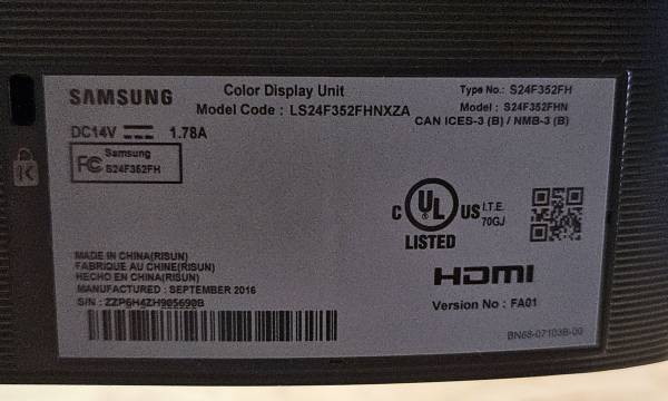 Samsung LS24F352FHNXZA 23.6-Inch LED Monitor - Black I paid $175, plus tax, directly from Samsung, and I only used it for a month. It's in like-new condition and comes with the power adapter as...
