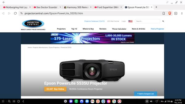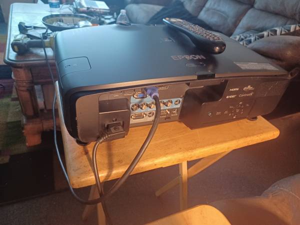 Epson powerlite 5535U 5500 lumen 1080p Projector. It has Miracast wireless lets you cast from phone or tablet direct without internet has 2 HDMIs HDbase for runs with CAT6 to 300 ft or more. Full lens shift .bright vivid color with the lights on . Off lease was $2300 new in 2022 .comes with 100 inch pull down 4.3 screen a Harmony uni remote set up to run it .Has power cord HDMI cable .30 day warranty . Works with cable box game system laptop iPhone Ipad Android chromecast firestick any HDMI really or just cast wireless will demo also have a manual 120 inch 16-9 pull down screen available for $95 more .price firm cash only