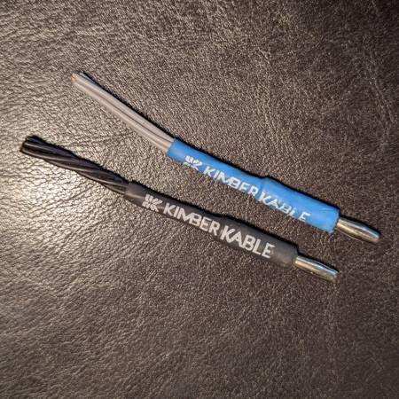 I'm not sure why, but the friend that gave me this vintage audiophile-quality speaker wire cut off the banana plugs on one end of its 25' length. So I'm selling it as bulk Kimber Kable. You could cut it in half, add your preferred type of connectors, and you'd have a pair of elite 12.5-foot long speaker cables at a very good price. Four wire strands per channel. The two severed plugs are included.