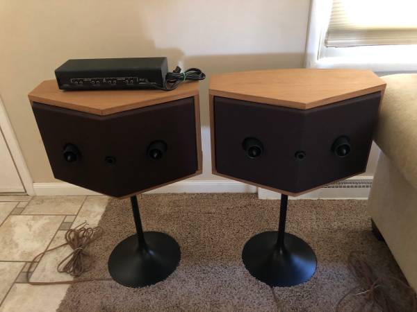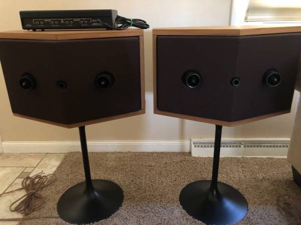 Bose 901 series VI (pair) speakers. 8-ohm system with nine 4.5-inch full range drivers that requires an active equalizer to achieve a flat frequency response. While exact frequency response and distortion measurements can vary, Wood grain encloser, with direct reflecting design. 901 special stands and equalizer is included.