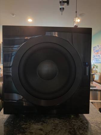 This is a Bowers & Wilkins DB4S Subwoofer in High Gloss black. B&W Series 700 10 in 1000 Watt subwoofer. Retails new for $2900. See https://www.bestbuy.com/product/bowers-wilkins-700-series-10-1000w-powered-subwoofer-gloss-black/JXT7VJQJCC.