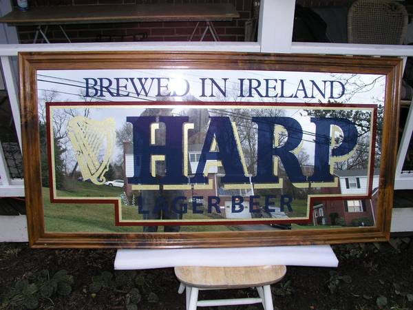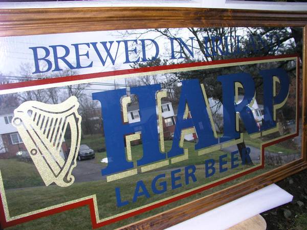 Here's the perfect Holiday Gift for the Guy with that ultimate Man Cave! One Beautiful Ireland GUINNESS HARP LAGER BEER MIRROR. This Mirror measures a whopping 65 3/4" X 33 3/4"! Would be fantastic as a center piece for that Man Cave. Great Condition! Thanks for Looking!