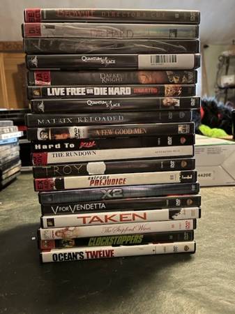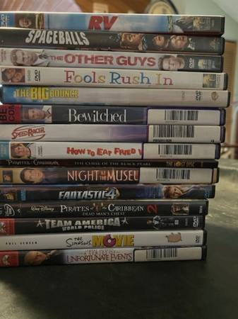 Large lot of dvd movies. Mostly adult R rated some children’s. Some still new and unopened. All in new condition. Too many to list. I counted 129 will sell individually
