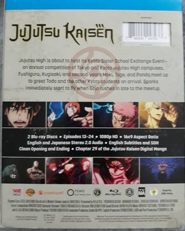 Jujutsu Kaisen Season 1 Part 2 (episodes 13-24) on blu-ray. This package is in new, still sealed condition. $20