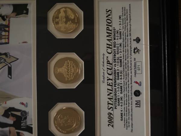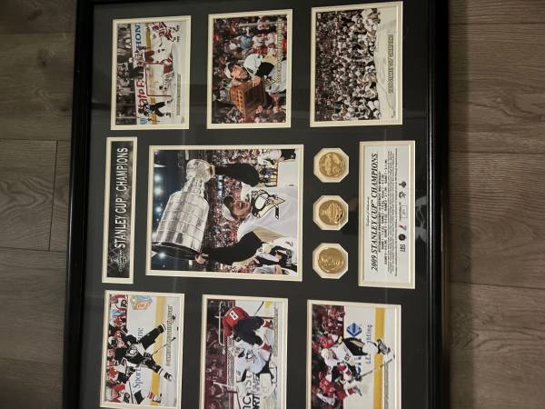 Stanley Cup winning poster with medallions. This poster is limited to 500 and each photo is numbered 71/500. Perfect for all fans and especially Malkin fans because this is #71. Like new shape....