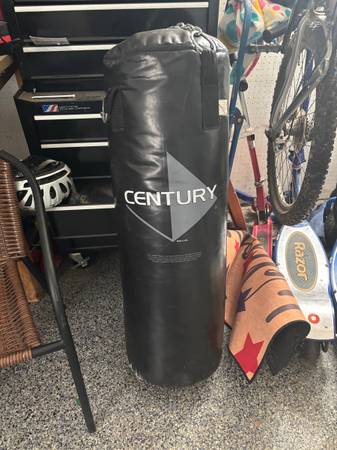 Selling 3 different punching bags/targets Adjustable Punching Bob- perfect condition $250 Century Powerline great shape. No rips and filled with sand. No leaks $75 Century heavy bag with chain. Tear...