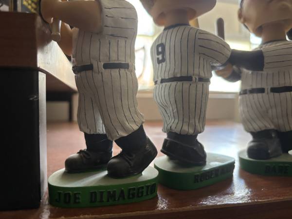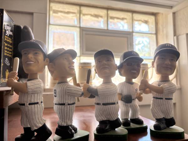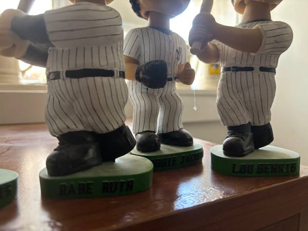 Stadium give away bobble heads of Yankee greats- Roger Maris, Lou Gehrig, Reggie Jackson, Babe Ruth and Joe DiMaggio. Given away at Columbus Clippers games. Include boxes and ticket stubs. Selling...