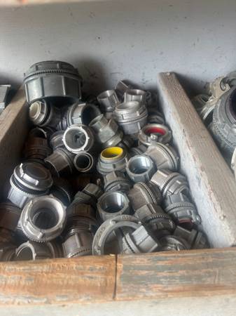 Many large size electrical supplies two and 3 inch conduit connectors switches some things I have no idea what they are. Save thousands of dollars over new make offer. Come see what I have.
