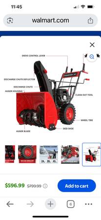 New snow blower used once for about 30 minutes. $300 or best offer .I had major surgery for cancer and can’t operate it anymore. It cost $600 when I bought it but I’m forced to let it go for less. It’s a 24 in, electric starter, self propelled and heated handles. The cancer surgery took my voice so I can only communicate by text or email. Obviously I can’t answer the phone so calling is a waste of time.