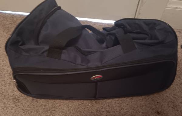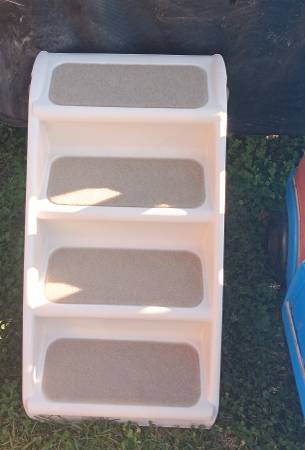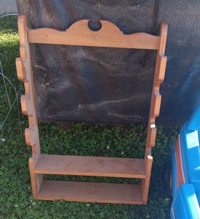 Duffle bag $15. Pet steps $25. Gun rack $15. 3 serving trays $15 for all. Toddler folding high chair $15. Suitcase $15. Crutches $15. Toddler push car $15. 1975 medium/large helmet $15. Pick up only