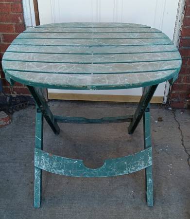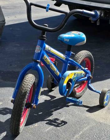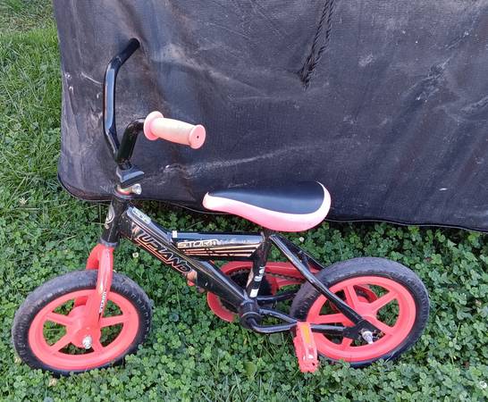 Plastic fold up table $15. 12 inch bikes $15 each. Metal stool $15. Pick up only. Paw patrol bike has training wheels