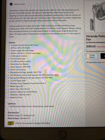 Veranda Patio Wall Fan Satin Nickel. - Brand New still in box!!! List for $588