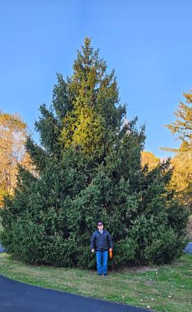 A free pine tree suitable for outdoor, municipality or community. Approximately 30 to 35 ft tall and approximately 26 ft wide. You would need a crane and a trailer to cut and take with you.
