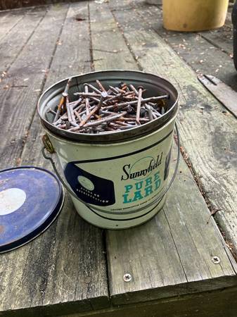 small bucket of #8 common sinker nails. Over 750 nails. Good shape--a little rust on a few.