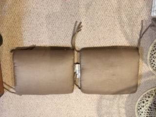 Sunbrella Patio Cushions- New 8 New 20”x 20” Sunbrella Patio Seat Cushions w/Velcro Ties and 2 New 22”x 22” Sunbrella Patio Foot Rest Cushions w/Cloth Ties. Total $30.00
