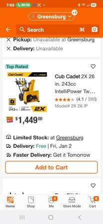 Top-Rated Cub Cadet Snowblower For Sale-$700 2X 26 in. 243cc IntelliPower Two-Stage Electric Start Gas Snow Blower with Power Steering and Steel Chute Only used twice, bought at Home Depot Cash only...