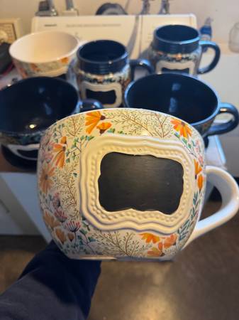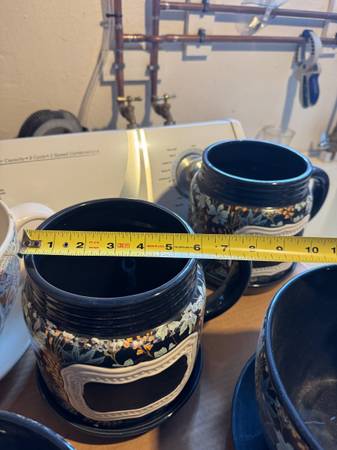 Total of 6 Ceramic Planters New 4 Blue + 2 white ( see photos) All 4 Blue ones as shown come with matching saucers. One of the white ones is missing the saucer but the other has the matching...