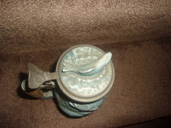 Vintage 1990 Avon "Freshwater Fishing" Stein Blue Handcrafted in Brazil $10