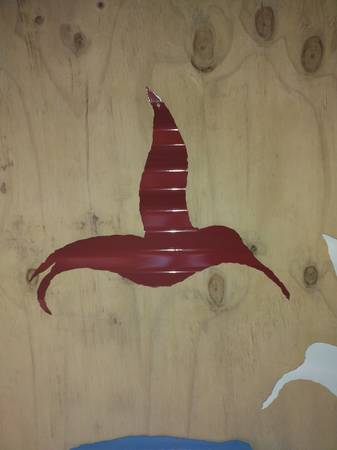 Metal hummingbirds made from corrugated steel. Time to spruce up that privacy fence or shed. Each one measures approximately 12 in x 18 in. Call or text if interested . Thanks for looking. Crafts...
