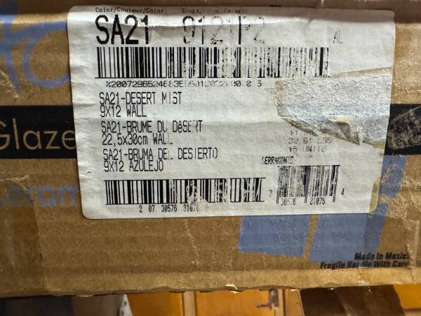 55 pieces of 9" x 12" SA21 Desert Mist porcelain wall tile and 9 pieces of 9" bull nose